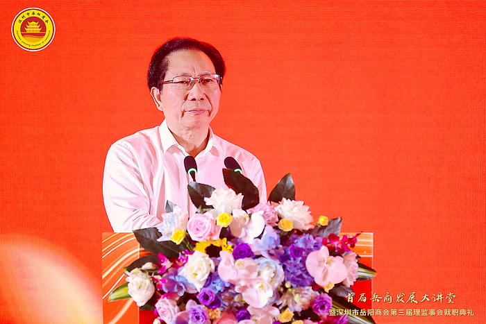 原湖南省商务厅一级巡视员、湖南异地联合会顾问毛七星,岳阳市政协主席黎作凤分别致辞,对商会的工作予以高度认可,并对岳商们提出新的期望,希望新一届领导班子持续推进商会的政治建设、基础建设、制度建设、队伍建设和文化建设,充分发挥桥梁与平台功能,广大乡友牢记“树高千尺不忘根,人若风光勿忘恩”,更加关心家乡、支持家乡、回报家乡,激励岳商在家乡放心投资、安心创业、共同发展。