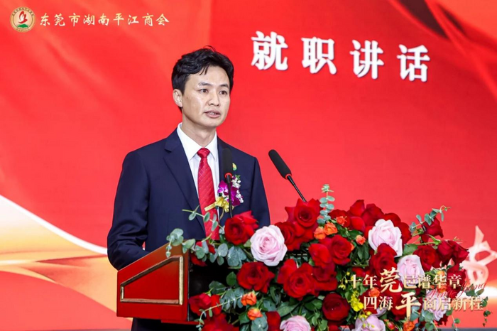 朱礼基在就职演说中表示,将始终秉持“服务会员、凝聚乡情、共谋发展”的宗旨,传承平商“敢为天下先”的进取精神,全力做大做强商会平台,深化湘粤合作,助力会员企业紧抓大湾区发展机遇,实现共赢发展。