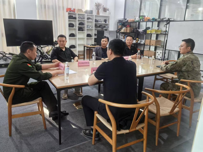 仲子斌与南山街道民兵公路运输连党支部书记喻灿明、物流运输协会(西部)执行会长张水兵、秘书长黄杰、民兵连指导员黄镇雄等骨干成员展开座谈,认真听取连队在国防教育、日常拉练、军民融合等方面的工作汇报,并细致了解当前工作中存在的实际困难。